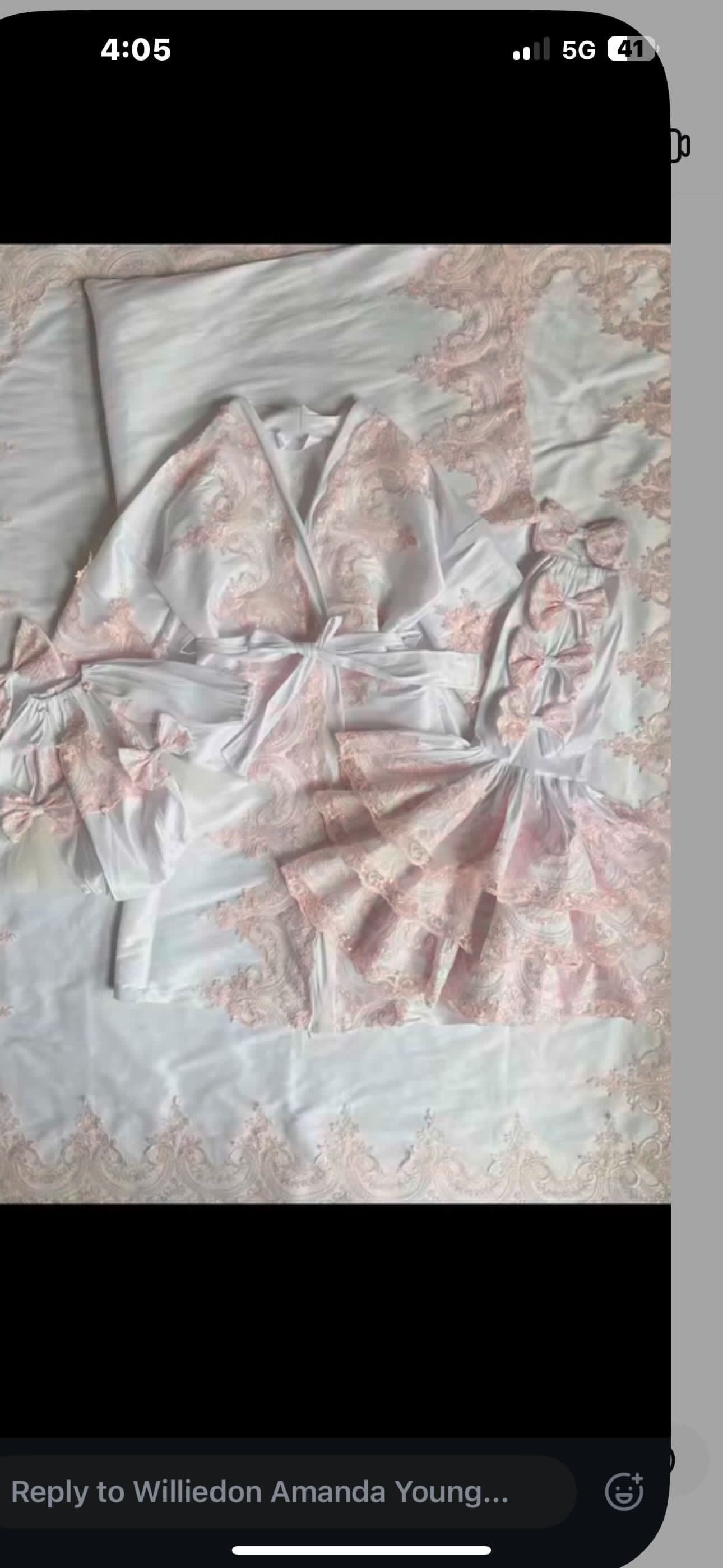Cameo- gown set (gown, headband and baby blanket) ruffles and gold trim like pic 2