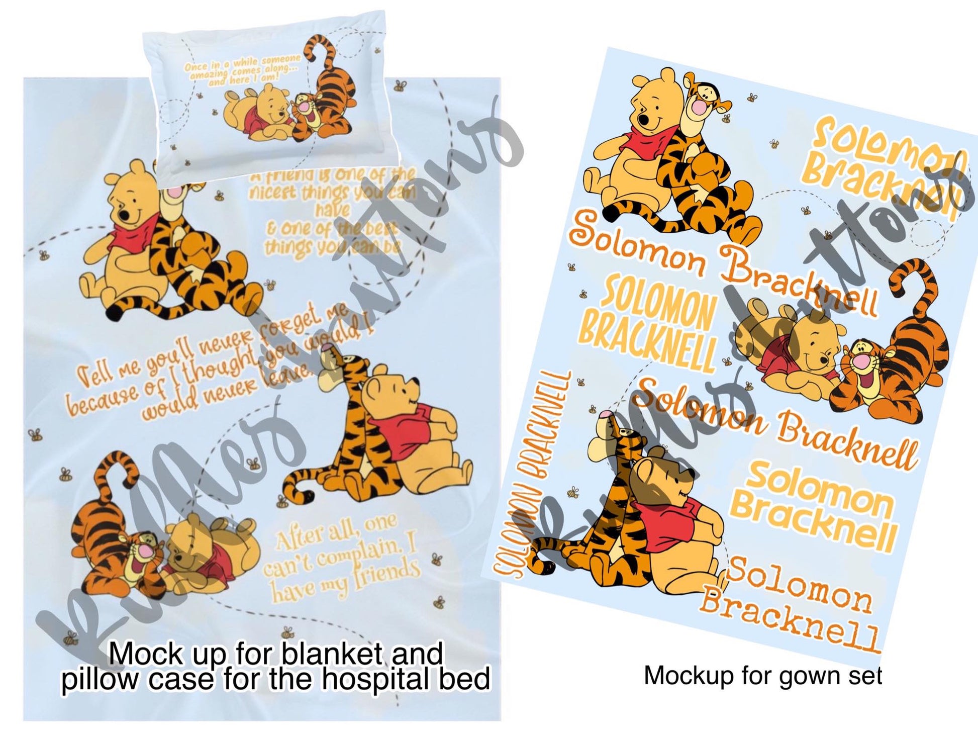 blanket and pillowcase for the hospital bed